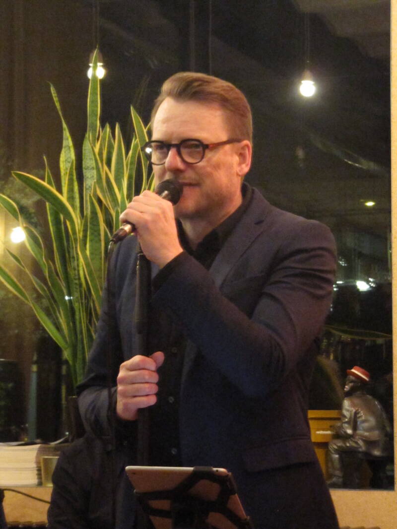 De Vlaamse Michael Bublé is al jaren een favoriet van ons, en Yannick zette onmiddellijk de juiste sfeer neer met ‘It’s Beginning to Look a Lot Like Christmas’. En we bleven in die kerststemming met ‘Let it Snow!’. Yannick vertelde ons dat hij deze periode niet veel thuis is, en daardoor zijn tweejarig dochtertje moet missen. Maar hij bracht groot nieuws, want zijn tweede dochtertje is op komst! Chris Rea’s ‘Driving Home for Christmas’ bracht de zaal in een opgewekte stemming, waarna Yannick ons meenam op een drieminuten durende trip naar het Zuiden, met ‘Volare’, deels in het Engels, en deels in het Italiaans. Hij koppelde daaraan ‘An Evening in Roma’. Maar Yannick dacht ook aan de minder bedeelden in deze tijd en droeg ‘Dream a Little Dream of Me’ aan hen op. Hij eindigde in volle swing met ‘Can’t Take My Eyes Off of You’, gevolgd door Wham!’s ‘Last Christmas’, waarop iedereen rechtveerde en meeklapte.