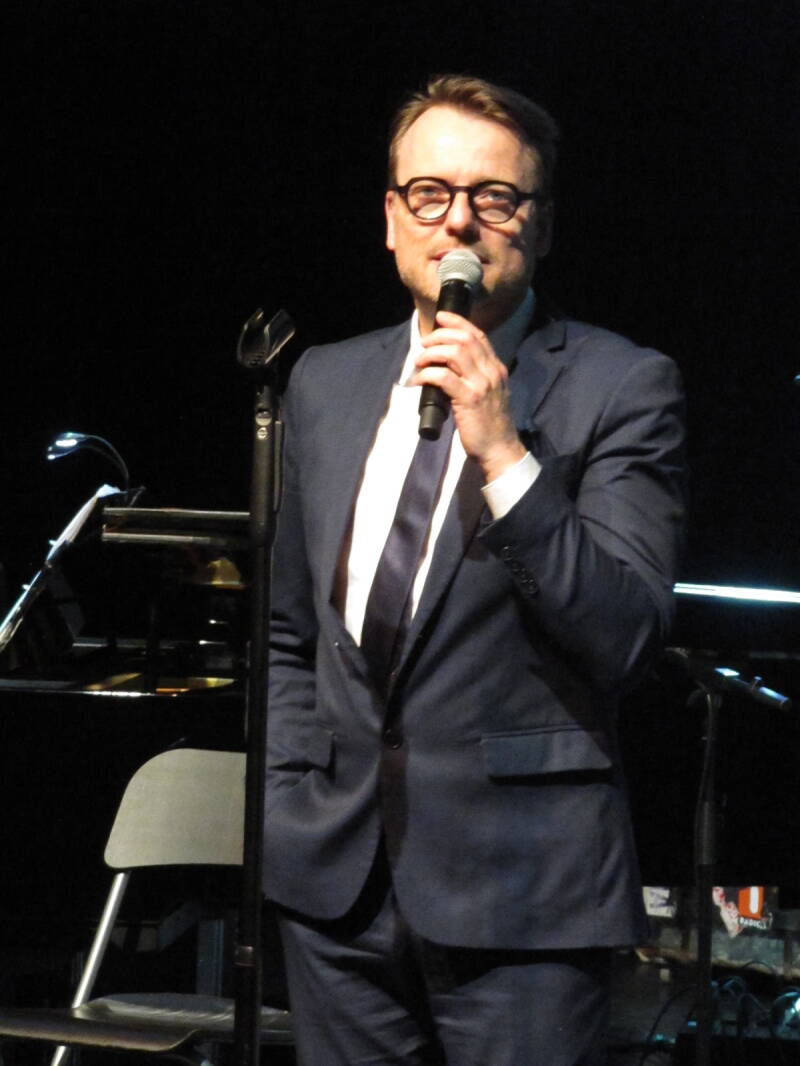Even na half acht openden 2 presentatoren, een man en een vrouw, dit concert met het duet ‘Winter Wonderland’. Achter hen nam de band plaats, die bestond uit een gitarist, een saxofonist, een trompettist/keyboardspeler, een drummer, een bassist en nog een keyboardspeler. Twee achtergrondzangeressen maakten het plaatje compleet. En als eerste gast werd de Wit-Rus Andreï Lugovski aangekondigd. Die opende met het Italiaanse liedje ‘Il Mondo’, waarna we in de kerstsfeer belandden met ‘Angels We Have Heard on High’. Andreï woont in Oostende, en bracht daarna een wals die me aan zijn thuisstad deed denken. ‘The Little Drummer Boy’ volgde daarop, waarna hij een Engelstalige song vertolkte, die ik niet kende. Terug dan naar het Kerstgebeuren met ‘Oh Holy Night’, waarna Andreï achter de gitarist kroop om samen met hem op diens gitaar te tokkelen, en enkele akkoorden voor te zeggen. Na dit humoristisch intermezzo zong Andreï een Italiaans lied, en sloot af met een Engelstalige song.