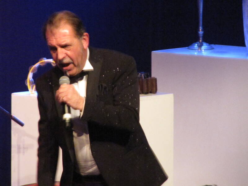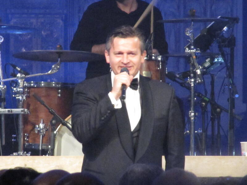 Bijna aansluitend kwam de Oostendse tenorzanger Andrei Lugovski op het podium. Hij vertelde ons dat hij recht van de luchthaven, na een vakantie, naar hier gekomen was. Andrei stond zo’n 2 jaar geleden volop in de belangstelling toen hij vergiftigd werd. Daar revalideert hij nu nog steeds van. Hij opende met de Italiaanse liefdessong ‘Il Mondo’, waarna nog meer Italiaans volgde met een cover van de hit ‘Lasciatemi Cantare’ (Toto Cutugno). Dan ging hij zowaar Helmut Lotti achterna met een cover van de licht klassieke song ‘Funiculi Funicula’. Tussendoor kwam een Nederlandstalig lied aan bod, waarna Andrei terugkeerde naar Italië met een Italiaanse versie van Dalida’s ‘Bambino’. Vervolgens coverde hij Julio Iglesias met diens hit ‘Abrazame’ (afwisselend in het Spaans en het Nederlands gezongen) dat hij zittend op de rand van het podium bracht. Een typisch Oostends liedje mocht niet ontbreken, gevolgd door een Engelstalig nummer. Een Italiaanse meezinger sloot dit voorprogramma af. En toen was het tijd voor de pauze.