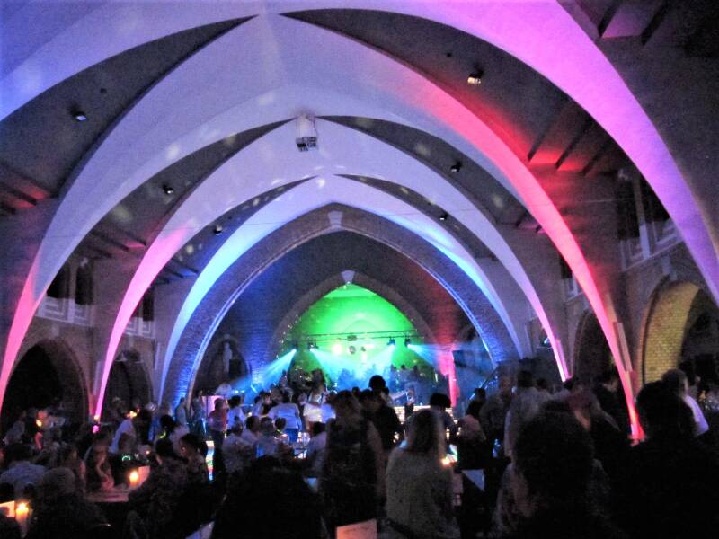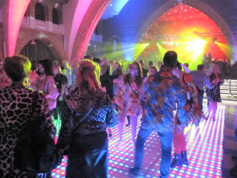 Discoballen, gekleurde spots en een verlichte dansvloer, zoals die te zien was in de discofilm ‘Saturday Night Fever’ gaven het gotische interieur (met spitsbogen) inderdaad de sfeer van een discotheek. Dj Christian Van Buggenhout van de feitelijke vereniging Swing & Dance had kosten noch moeite gespaard om hier een succes van te maken.