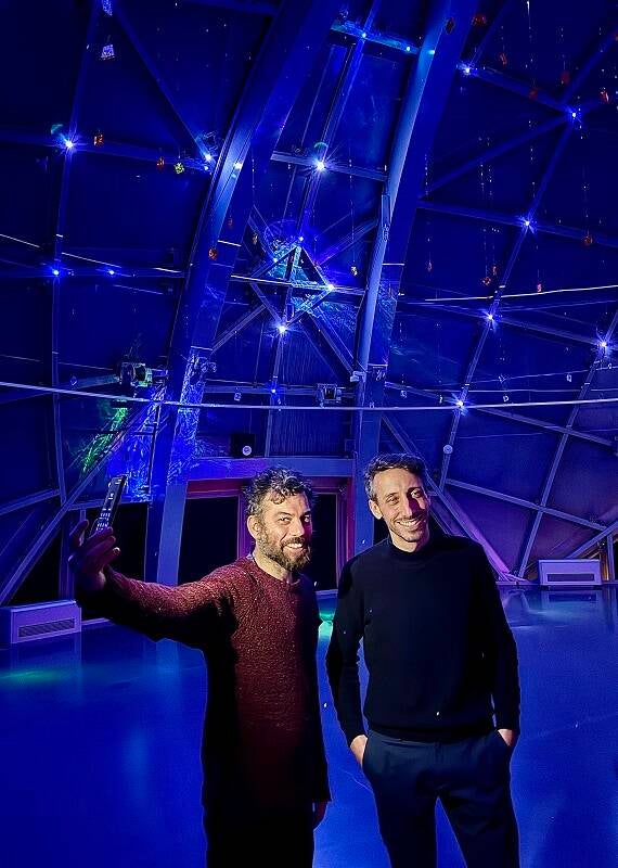 Antoine Goldschmidt gebruikt de onderste bol van het Atomium als eerste op deze manier. Hij combineert zijn passie voor licht met het rijke erfgoed van het Atomium om een unieke ervaring te creëren. In perfecte harmonie met de metalen structuur van het Atomium gaat zijn creatie een dialoog aan met de interieurarchitectuur van het monument. Door de randen van de bol te onderstrepen en ermee te spelen, lijkt deze tot leven te komen en te veranderen in een stellaire capsule die bezoekers meeneemt naar verre universums. Laserstralen gaan door een hangende glazen sculptuur en produceren organische patronen die geïnspireerd zijn op hemelse landschappen: nevels, sterrenstelsels en verre sterren. Licht en beweging leiden bezoekers door een poëtische verkenning van tijd en het universum, waarbij elke straal een echo lijkt te zijn van verdwenen werelden.