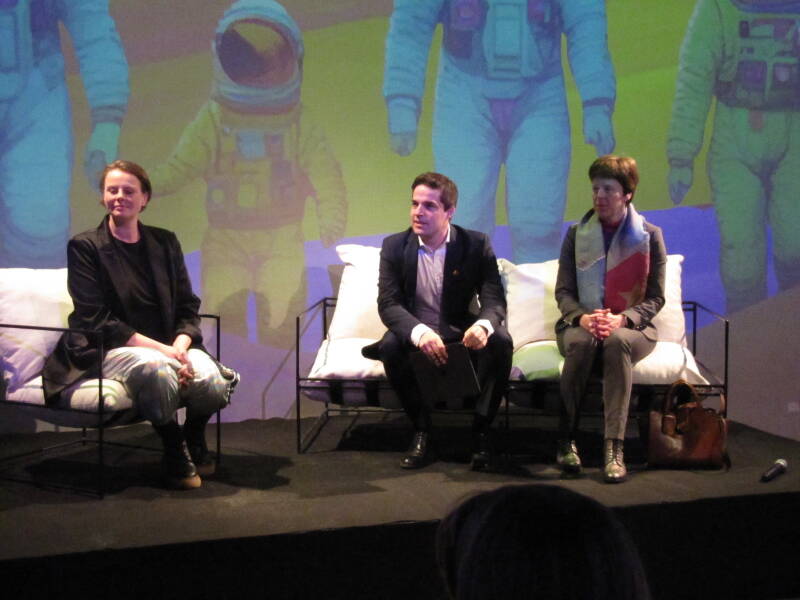 Ik had een kort gesprek zowel met Goldschmidt als met Smilansky. Beiden werken regelmatig samen, en dan vooral met licht. Ik vroeg Goldschmidt of hij speciaal in de kosmos geïnteresseerd is. Hij antwoordde: “Niet speciaal. Soms gebruik ik ook andere beelden. Zo is er volgend jaar een expo voorzien in het nieuwe, futuristische (en over budgetgaande) stationsgebouw in Mons.” Goldschmidt ontwikkelt zowel zijn activiteiten in Europa als internationaal. Hij gebruikt digitale creatie en Light Art om werken te creëren die ons voortdurend met vragen over de wereld confronteren en ons verbazen. Verder werkt hij samen met andere kunstenaars uit de Belgische en Brusselse scene en richtte de vereniging United Belgian Visual Artists op om uitwisseling en samenwerking binnen het Belgische en Brusselse ecosysteem van digitale kunst aan te moedigen.