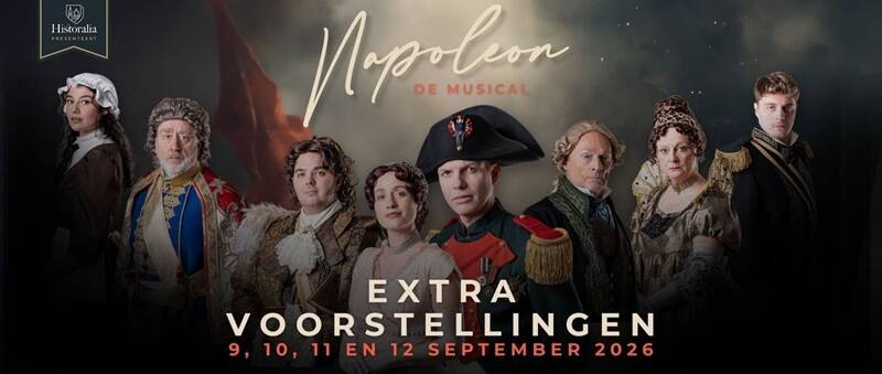 Productiehuis Historalia is heel trots onderstaande (nu al) te mogen communiceren. Ruim voor de start van de voorstellingen midden augustus 2026 zijn er al 27.000 tickets de deur uit en is ’Napoleon’ - met Jelle Cleymans in de hoofdrol - goed op weg het meest succesvolle musicalspektakel van Historalia tot op heden te worden. Wegens het enorme succes worden er nu al 4 extra voorstellingen op het domein van kasteel de Merode in Westerlo in verkoop gezet. (9, 10, 11 en 12 september 2026).